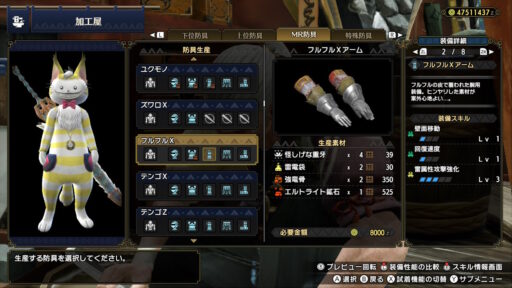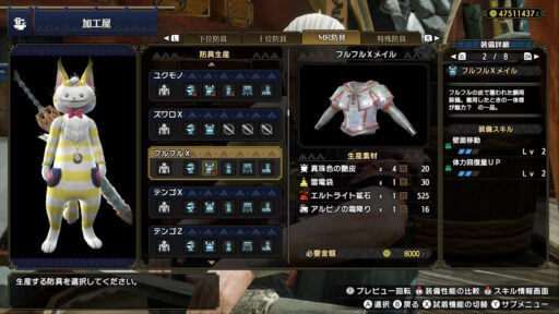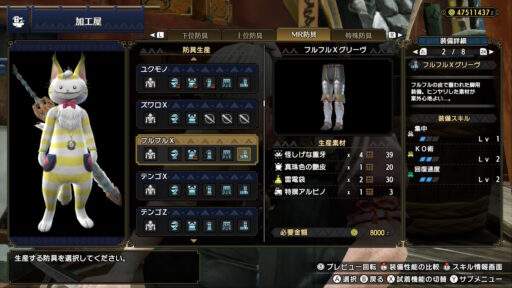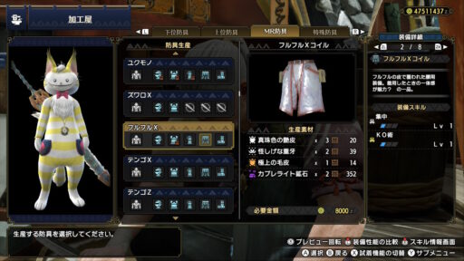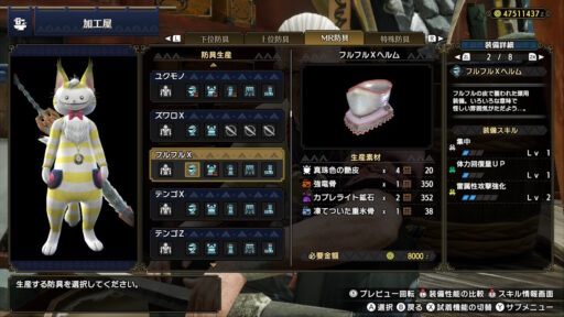 というわけで、フルフルの素材で作られた防具を紹介します!