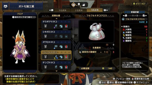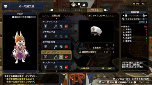 こんな感じです!そしてこれらの装備をオトモアイルーが着用した姿がこちら!