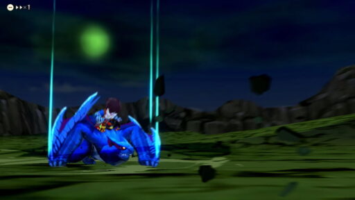 闇夜に光る赤い双眸は獲物を見逃しません。素早い動きで相手を錯乱させ、刃翼で切り刻む技となっています!