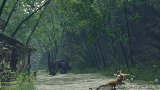 そこにイズチが迷い込みます。運悪くイズチが迷い込んだのはナルガクルガの縄張りです!