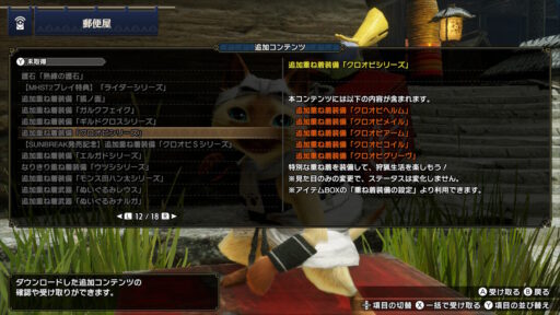 そして項目の中にある追加コンテンツを押して、その中からクロオビシリーズを探します、そして見つけたらそれを選択するだけです!