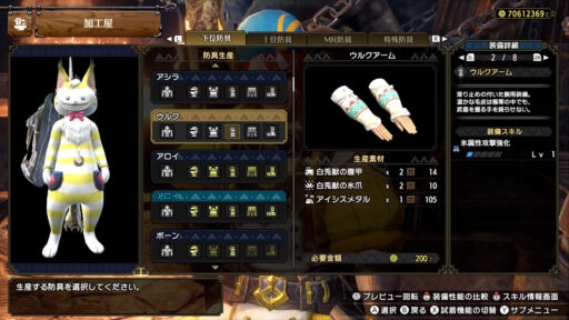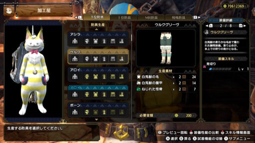 ウルクススの防具はとても可愛らしくて暖かそうです!そんな防具を武具説明ありで見ていきましょう!