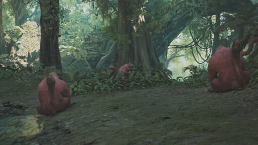 ババコンガはジャングルには似合わないピンクの毛並みを持っています!
