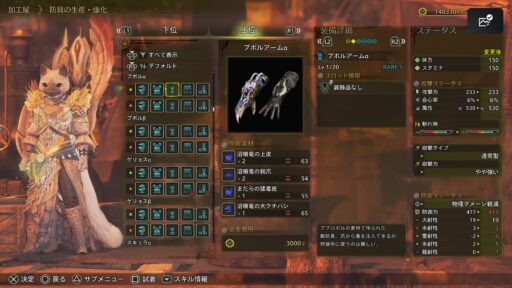 ププロポルの素材で作られた腕防具。爪から毒を注入できるが、狩猟中に使うのは難しい。