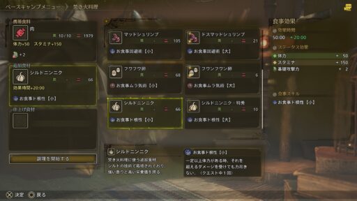 「レ・ダウ行くのにレ・ダウの歴戦王の装備がいるのかよ」「歴戦王狩れないけど護石が欲しい・・・」と思った方は、シルドのごはんを食べたり、焚火料理でシルドニンニクを調理に使い【ド根性】をつけましょう。