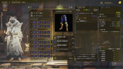 護石が手に入る☆9のレ・ダウに行く場合は、装備を頭と腕をレダゼルトγ、足をトゥムナルγまたはレダゼルトγを装備して、グループスキル【ヌシの魂】を発動して、一撃必殺レベルの技を耐えれるようにしましょう。