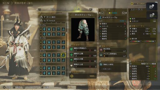 そんなチャタカブラの防具を見ていきましょう!(上位防具になります)