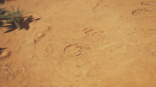 隔ての砂原は砂漠ですので、砂だらけです!そんな砂だらけの場所で歩いたら足跡が付きます!