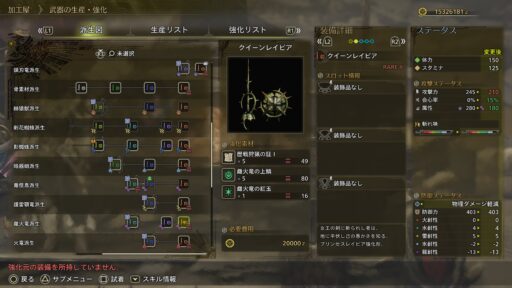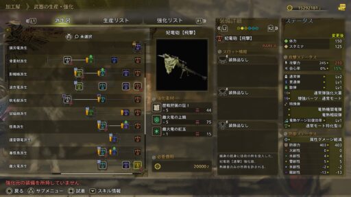 細身の銃身に技術の粋を投入した、妃竜砲【遠撃】強化版。熟練者のみが所持を許される。