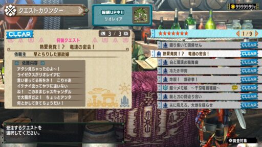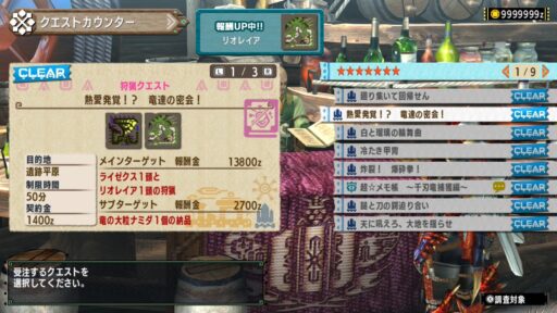 このクエストではリオレイアとライゼクスという別の飛竜種を討伐するクエストで、なんとライゼクスがリオレイアに寄り添っているとの情報が…!
