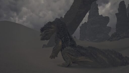 主に隔ての砂原に生息しています!砂地を海のように泳ぎます!砂を泳ぐ海竜種はMHP3のハプルボッカを彷彿としますね!