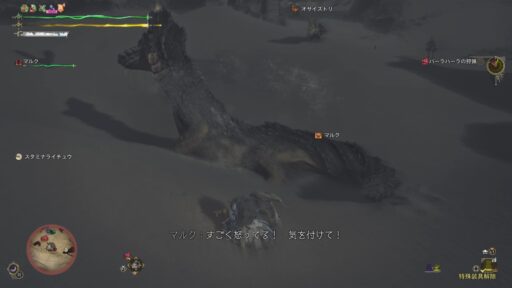 豪快に砂を出す様は生きるための行動です!モンスターとはいえ一つの生き物のように感じられるのはモンスターハンターの面白い所だと思います!