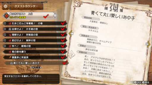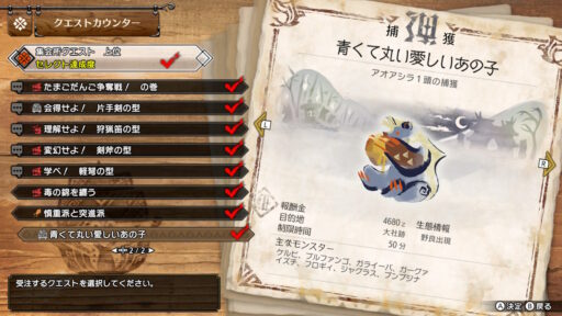という内容です!この依頼文にこめられたアオアシラへの愛・・・!素晴らしいですね!(モンスターも大変ですね…)