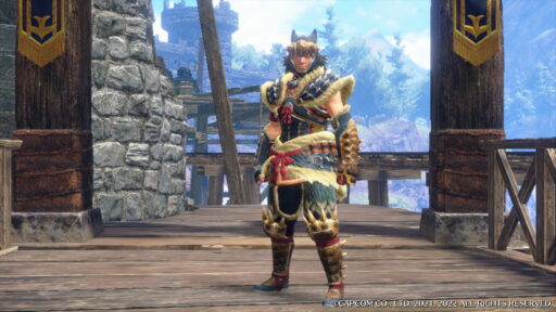 青熊獣の素材を使った腕用装備。細部に至るまでユクモ村ならではの意匠が見て取れる。
