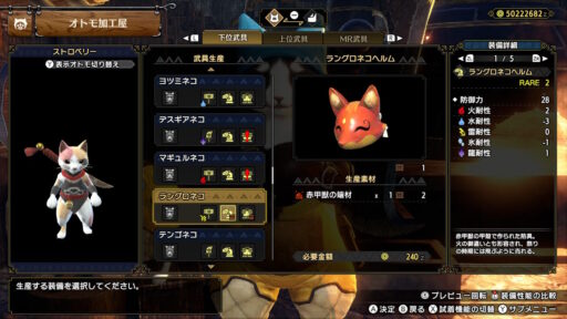 キツネの姿のようで可愛すぎますね!まさかラングロトラの素材からこんなに可愛い装備ができるとは・・・!