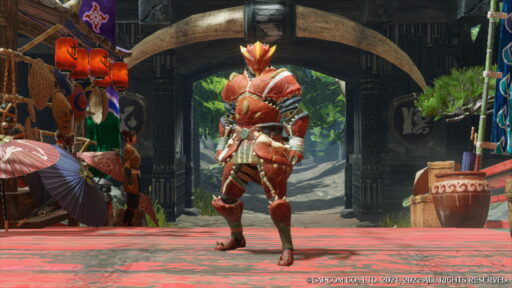 ラングロトラの甲殻で作られた防具は独特な見た目をしています。