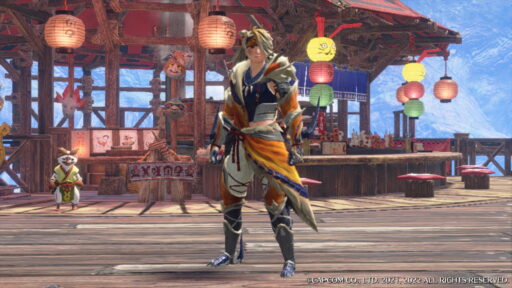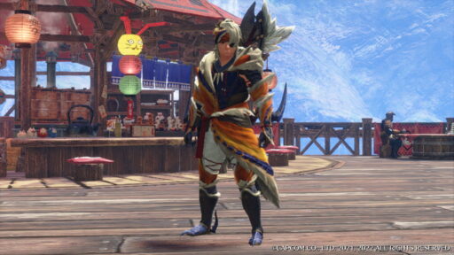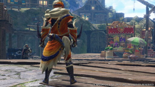 派手な出で立ちの鎌鼬竜の胴用防具。義賊の長にふさわしく、束ねる者の威厳を感じる。