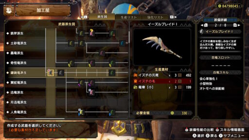 オサイズチとイズチの素材で作られた武器は切れ味がよく、序盤ではそこそこ重宝します。しかし、オサイズチにはオサイズチの武器、イズチにはイズチの武器があることをご存知ですか?