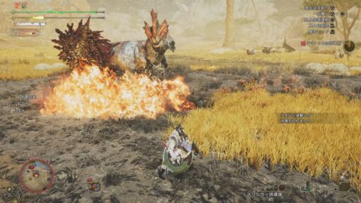 万が一尻尾の一撃を喰らってしまった場合は、ハンター(プレイヤー)が炎属性やられになってしまいジリジリと体力を奪われます!