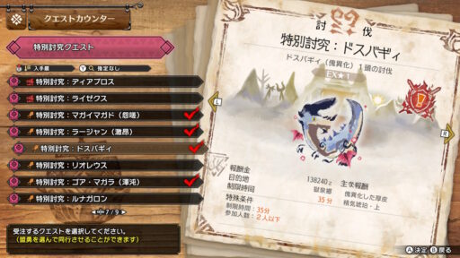 他にも作品ごとにやり込める要素はいろいろあり、モンスターハンターダブルクロスという作品なら特殊許可クエストという要素があります。