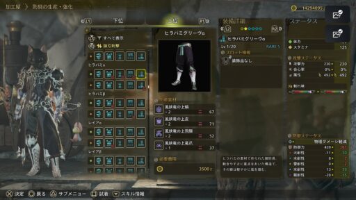 そんなヒラバミの防具を防具説明付きでみていきましょう!