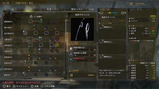 戦乱の豪傑が携えたとされる風鉤刀強化版。放つ連撃は威風を纏い。対峙する者を圧倒する