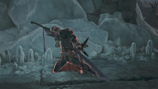 ヒラバミの弓です!紫色のみためがかっこいいですね!風になびく布もヒラバミっぽさがあります!