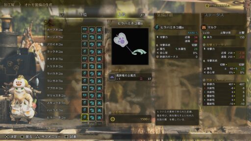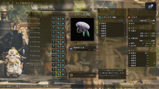 武器と防具はかっこいいヒラバミさんですが、オトモの防具はどうなのでしょう?
