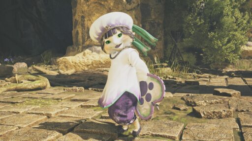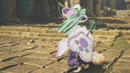 ひらひらと風に舞う長い袖!ゆったりとした腰回り!頭をすっぽりつつむ帽子!可愛すぎませんか!?ほっぺのチークみたいなやつも、この装備の特徴です!