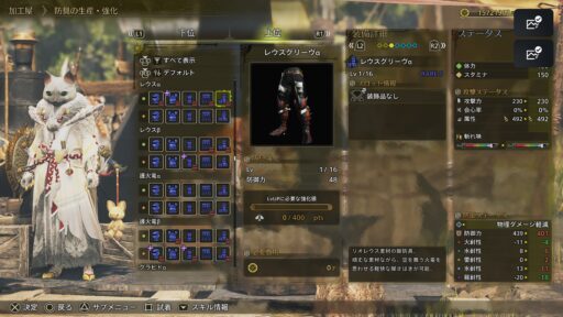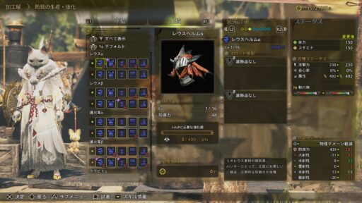 リオレウス素材の胴防具。無欠の性能は、もはや畏怖の対象。空の支配者の寵愛を受けた装備。