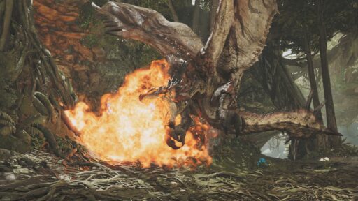 リオレウスは、火竜の名に恥じない炎のブレスや高い飛行能力を持っており、その強さゆえに、基本フィールドの生態系の頂点にいます。